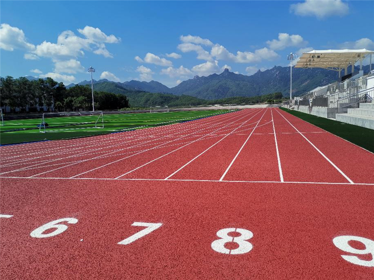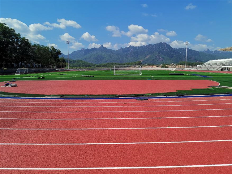 紅色的混合型噴顆粒塑膠跑道十分醒目漂亮,不僅顏值高,而且踩上去彈性適中,帶來舒適的腳感。跑道采用“廣州帝森DISEN”品牌聚氨酯雙組分材料建成,由廣州帝森康體設(shè)備有限公司提供原材料和技術(shù)支持。