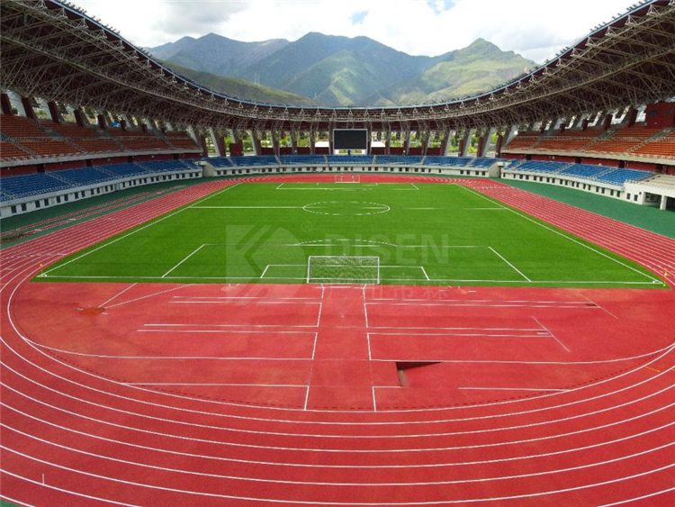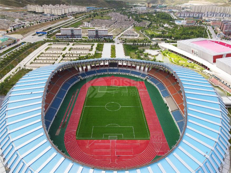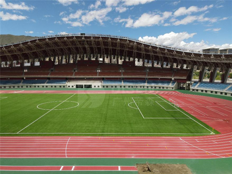 廣州帝森DISEN材料憑著優(yōu)異的性能,克服了氣候惡劣、高原環(huán)境復(fù)雜等不利因素,助力項(xiàng)目如期竣工。體育場全塑型塑膠跑道,面積達(dá)15000平方米,完全符合新國標(biāo)環(huán)保要求,不添加任何有機(jī)溶劑,無有害物質(zhì),無刺激性氣味,是安全、環(huán)保、專業(yè)、耐用的綠色運(yùn)動(dòng)鋪裝材料。