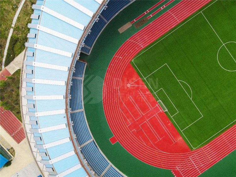 寒冷天氣下,塑膠地面材料受低溫影響固化變慢、流平性能變差,存在施工非常困難或者無法施工的弊端。而且拉薩日照時(shí)間比一般地方長很多,在強(qiáng)紫外線照射下會(huì)加速塑膠跑道褪色及老化。因此,對(duì)項(xiàng)目塑膠跑道材料的耐候性、流平性、抗紫外線性能等提出了更高的要求。