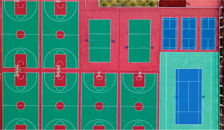 該球場(chǎng)的建設(shè)原材料及施工技術(shù)均由廣州帝森DISEN提供支持,項(xiàng)目總面積約為4544㎡,包括籃球場(chǎng)、排球場(chǎng)、乒乓球場(chǎng)和網(wǎng)球場(chǎng)。