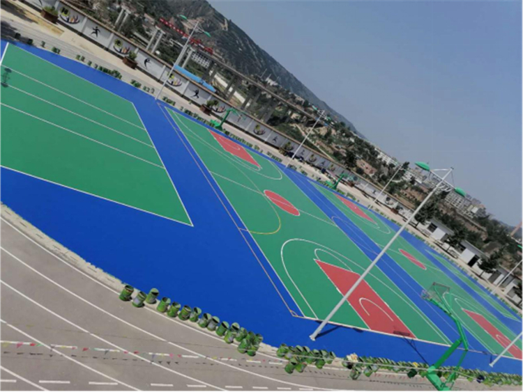 進(jìn)入校園,一片藍(lán)綠相間的塑膠(硅PU)球場映入眼簾。場地包含兩個籃球場,一個排球場,一個羽毛球場,采用的是廣州帝森DISEN單組份硅PU球場材料,更環(huán)保、安全、舒適、美觀,受到了校領(lǐng)導(dǎo)、施工方的大力肯定。