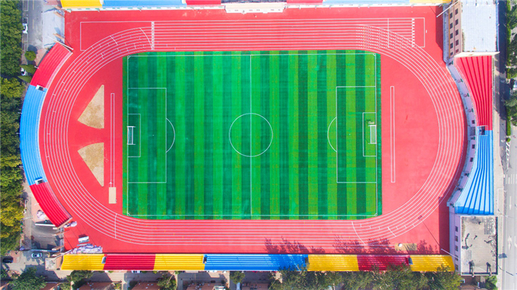 德州市伊璞高級中學(xué)藍(lán)色運動場由廣州帝森DISEN提供原材料和技術(shù)支持,別具美感,采用清新、沉穩(wěn)的藍(lán)色海洋色調(diào),極富視覺沖擊,藍(lán)色跑道與綠色草地的碰撞,張揚著絢爛明媚,帶給學(xué)生放松、愉悅的感受。