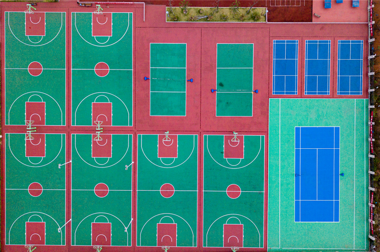 南湖新城學(xué)校綜合球場的建設(shè)原材料及施工技術(shù)均由廣州帝森DISEN提供支持,項目總面積約為4544㎡,包括籃球場、排球場、乒乓球場和網(wǎng)球場。