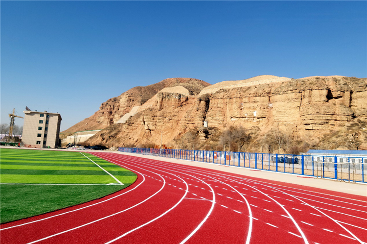 云南省永勝民族中學(xué)混合型塑膠跑道面積達(dá)1萬平方米,采用“廣州帝森DISEN”品牌聚氨酯雙組份材料建造,由廣州帝森康體設(shè)備有限公司提供原材料及技術(shù)指導(dǎo)。寬敞潔凈的紅色塑膠跑道、與白色教學(xué)樓、茂密濃郁的綠色植被相輝映,組成了校園最亮麗的風(fēng)景線。