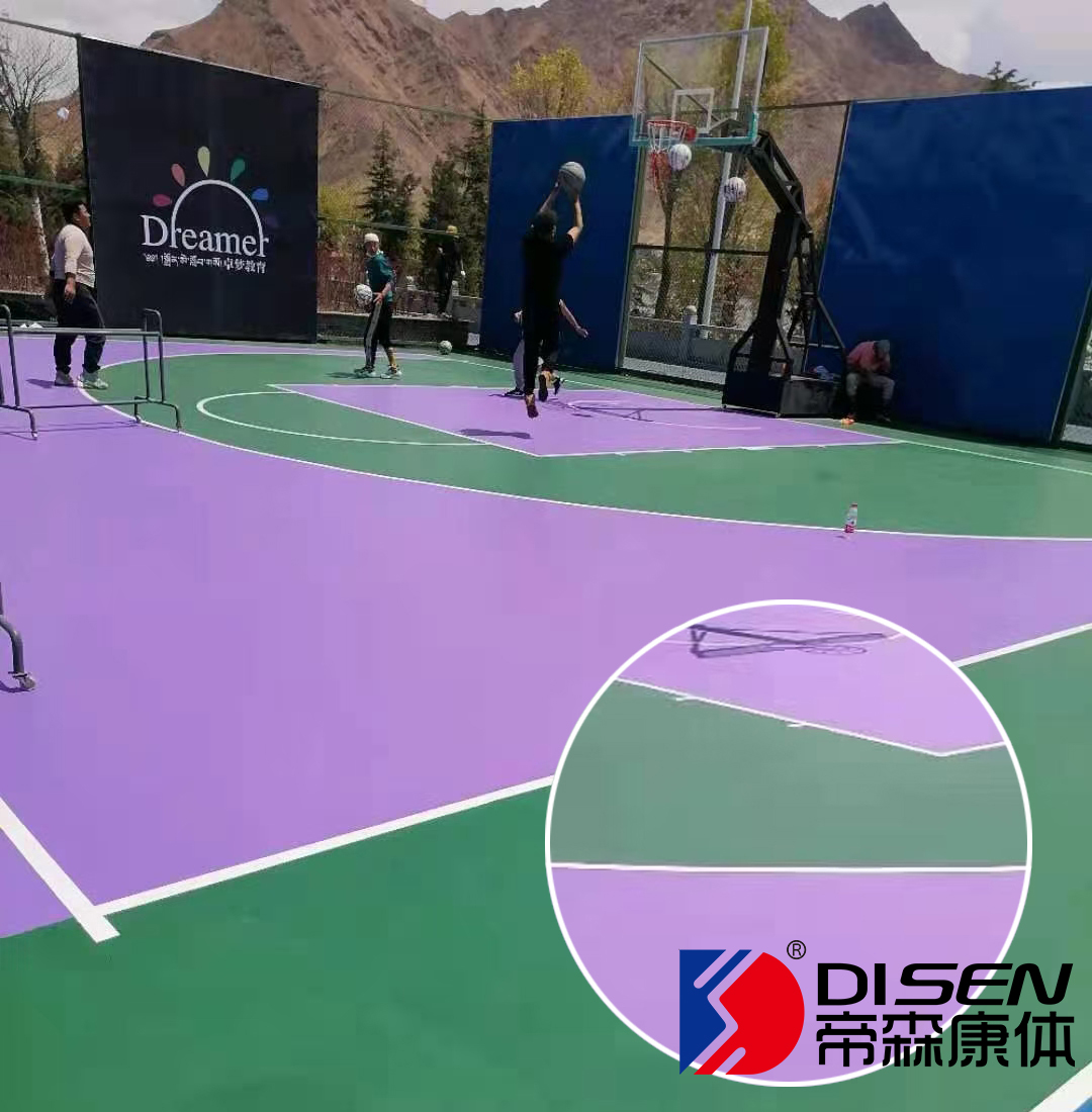 卓夢教育學(xué)校硅pu球場項(xiàng)目修補(bǔ)場地,采用廣州帝森DISEN提供的面漆原材料,通過藍(lán)黃、綠紫的搭配,色彩純正鮮明,不一樣的配色,不一樣的體驗(yàn)效果。