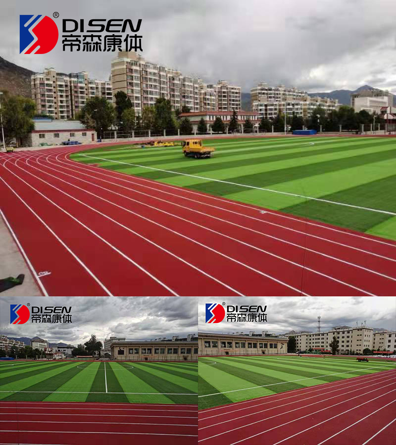 西藏拉薩西藏職業(yè)技術(shù)學(xué)校,塑膠跑道底層為雙組份聚氨酯膠水材料,及雙組份聚氨酯面漆層,其色彩穩(wěn)固,耐紫外線能力強(qiáng),不褪色,為高海拔地區(qū)的同學(xué)們提供專業(yè)的運(yùn)動場地,更好的學(xué)習(xí)和生活。