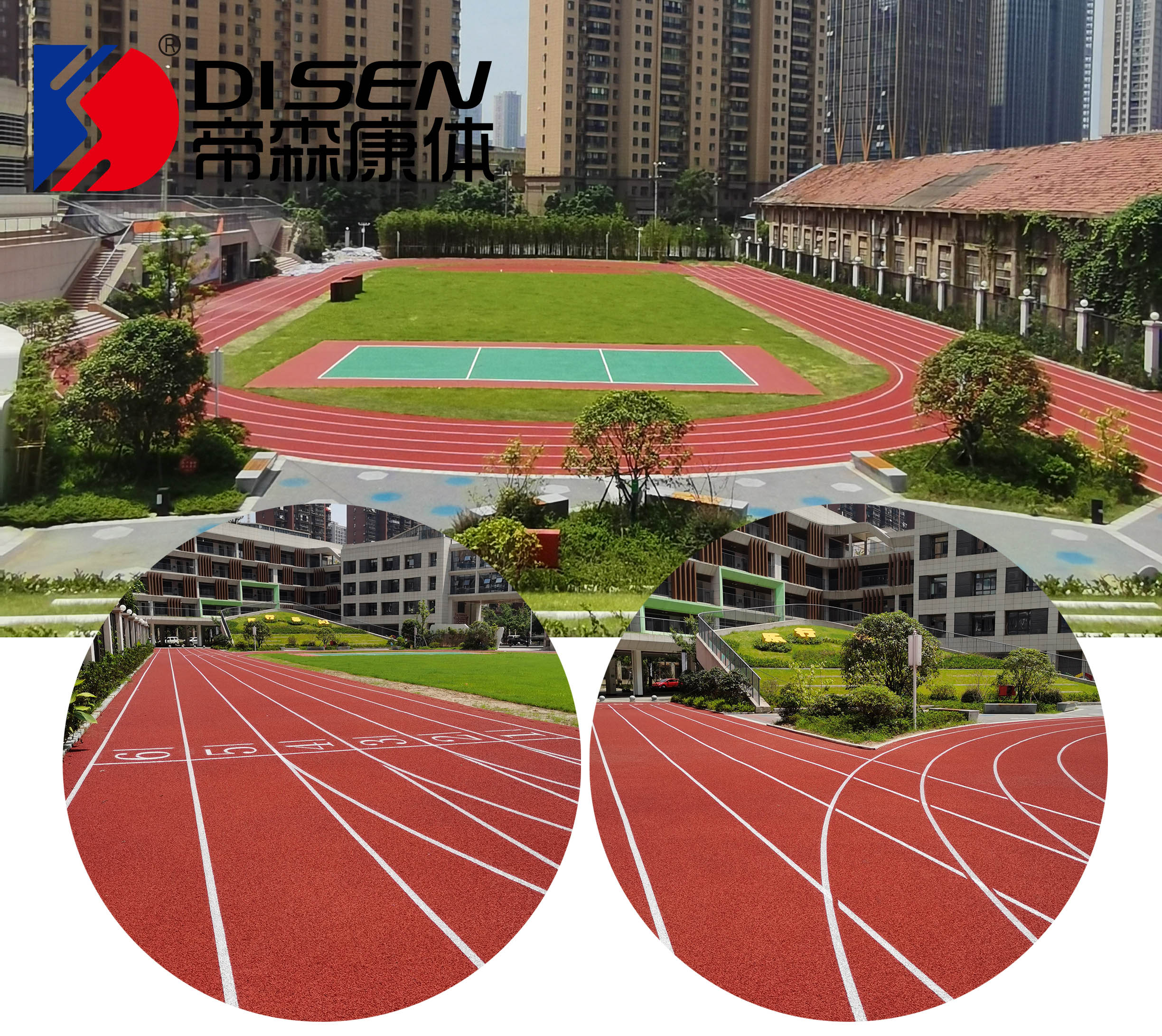 學(xué)校塑膠跑采用“廣州帝森DISEN”品牌聚氨酯雙組份材料建造,緩沖性強(qiáng)、彈性好安全、抗磨損、耐沖擊能力強(qiáng),符合新國標(biāo)(GB 36246-2018)要求,對運(yùn)動人員的碰撞不會造成損傷,很適合小學(xué)校園運(yùn)動產(chǎn)地的鋪裝。