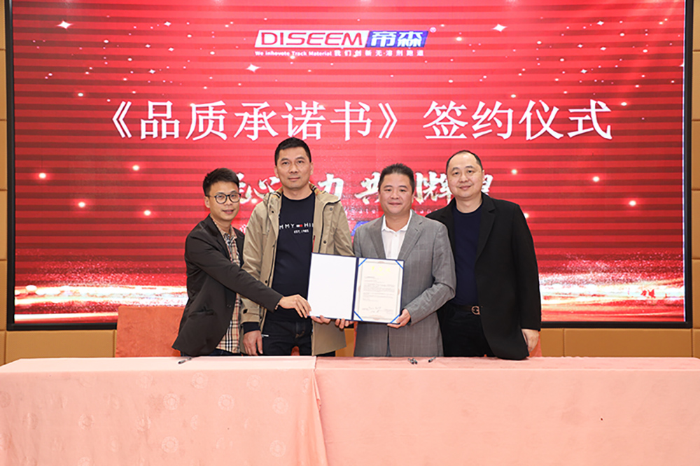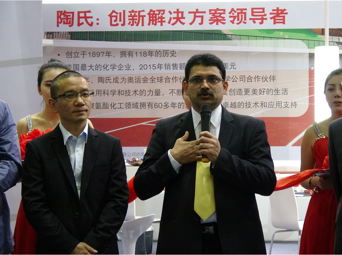 DISEEN帝森聯(lián)手陶氏化學(xué)在中國(guó)國(guó)際體育用品博覽會(huì)上正式推出高性能環(huán)保無(wú)溶劑跑道膠粘劑解決方案,助力在中國(guó)打造安全健康的運(yùn)動(dòng)跑道和休閑場(chǎng)地。